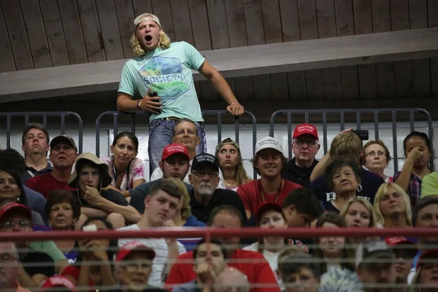 Or, in one particularly powerful moment at a rally: “I am your voice.” In the land of temporarily embarrassed millionaires, the American Dream still has some power, and so a capitalist king like Trump has told the nation he will be the bully on their side, that they can marvel at him, accept his authority and believe he will do something for them.