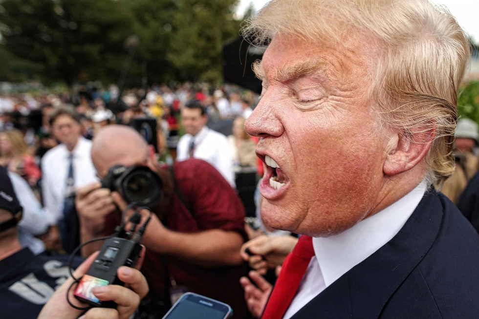 Photo: Then-Republican presidential candidate Donald Trump talks with journalists during a rally against the Iran nuclear deal on the West Lawn of the US Capitol in Washington on 9 September (AFP).
