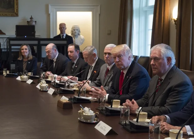 Photo: US President Donald Trump and Defense Secretary James Mattis at a cabinet meeting at the White House on 13 March 2017 (Reuters)
