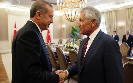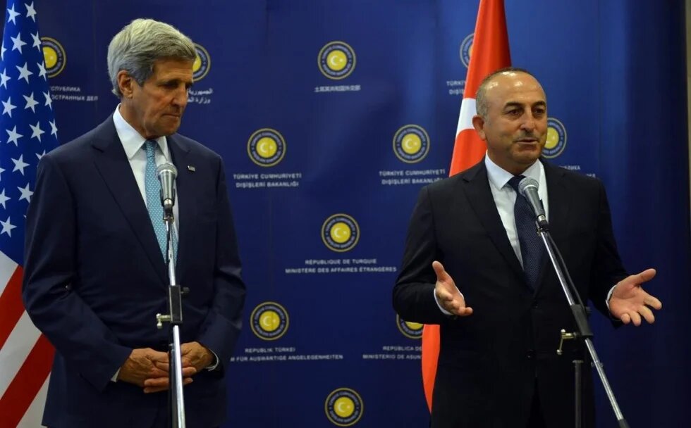 Photo credit: US Secretary of State John Kerry and Turkish Foreign Minister Mevlut Cavusoglu on 12 September 2014 (AA)