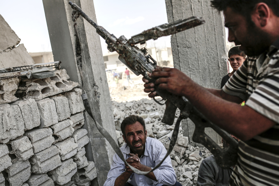 Photo: A man carries a seized weapon from IS (Islamic State) on September 6 ,2015 in Kobane, northern Syria. Syrian Kurds have carved out an autonomous region in northern Syria. (AFP)