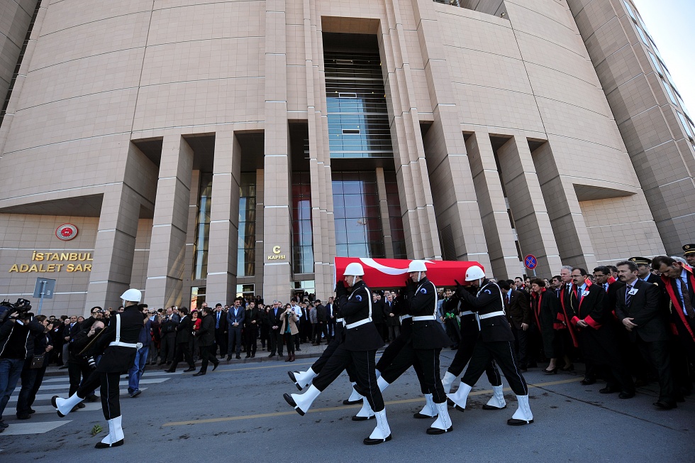 Photo: Police officers carry on 1 April, 2015 in Istanbul the coffin of senior Istanbul prosecutor Mehmet Selim Kiraz (AFP)