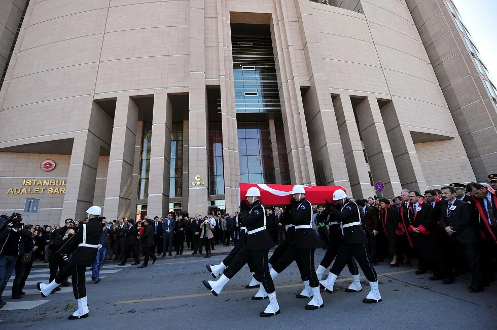 In gruesome scenes in Istanbul’s central courthouse at Caglayan on Tuesday, two Marxist Leninist militants from the DHKP-C [Revolutionary Peoples Liberation Party and Front], posed for photographs amid revolutionary flags while holding a terrified prosecutor prisoner captive and gagged. The pictures were soon seen around the world.