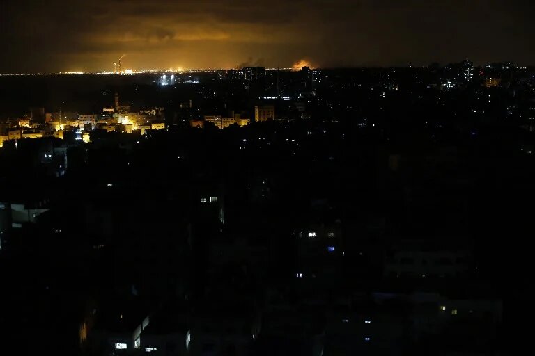 Photo: The northern part of Gaza City (foreground) remains dark during a power outage as the Israeli city of Ashkelon (background left) is normally lit on 18 July 2014 as Israel's assault on Gaza continued (AFP)