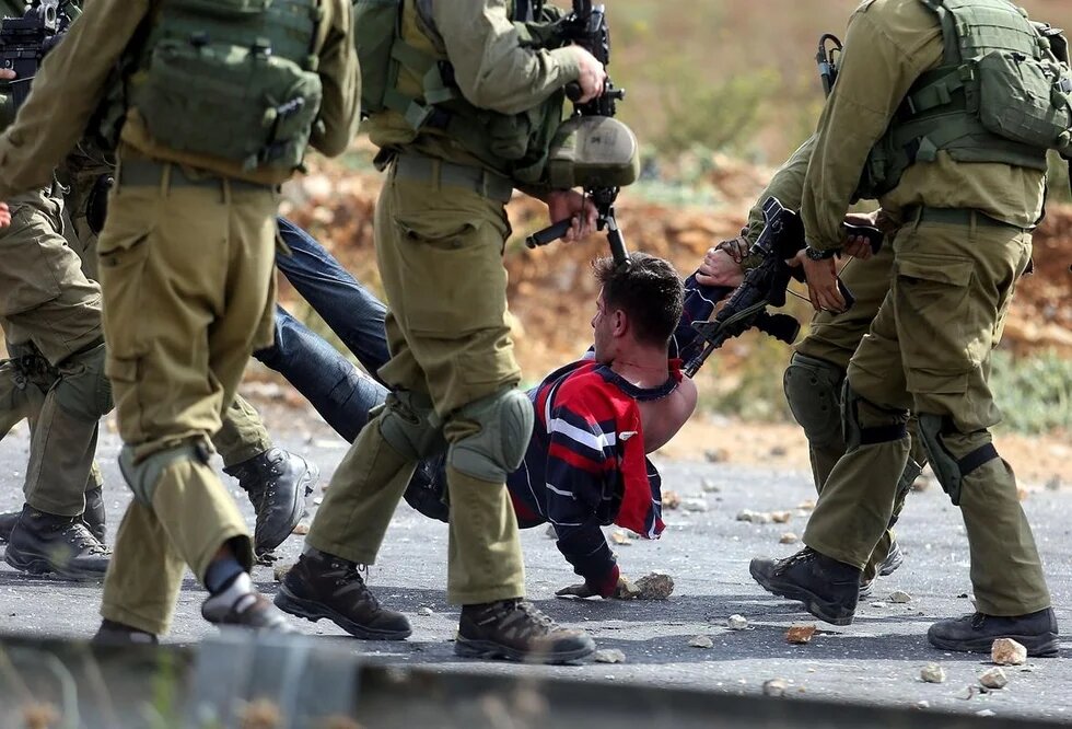Photo: Israeli soldiers beat up Palestinians as they take some protesters into custody during a protest against preventing Palestinians from entering the Al-Aqsa Mosque compound, on 7 October 2015, near a checkpoint of an Israeli settlement in Beit El, West Bank. (AA)