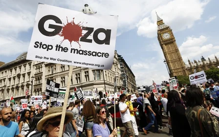 Photo credit: An estimated 100,000 people protested in London against the latest Israeli assault on Gaza in August 2014 (Hanan Chehata/MEE)