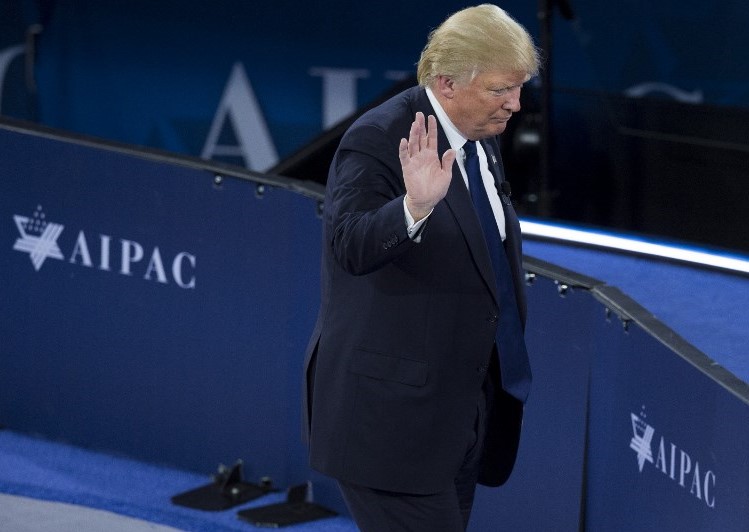 Photo: Donald Trump waves after addressing the American Israel Public Affairs Committee (AIPAC) 2016 policy conference in Washington DC (AFP).