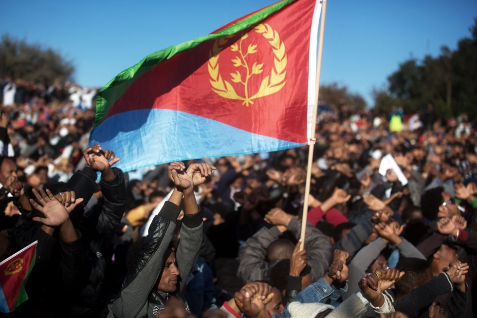 Photo: African asylum seekers who entered Israel illegally via Egypt, wave the Eritrean flag, during a protest in front of the Knesset in Jerusalem, on January 8, 2014. (AFP)
