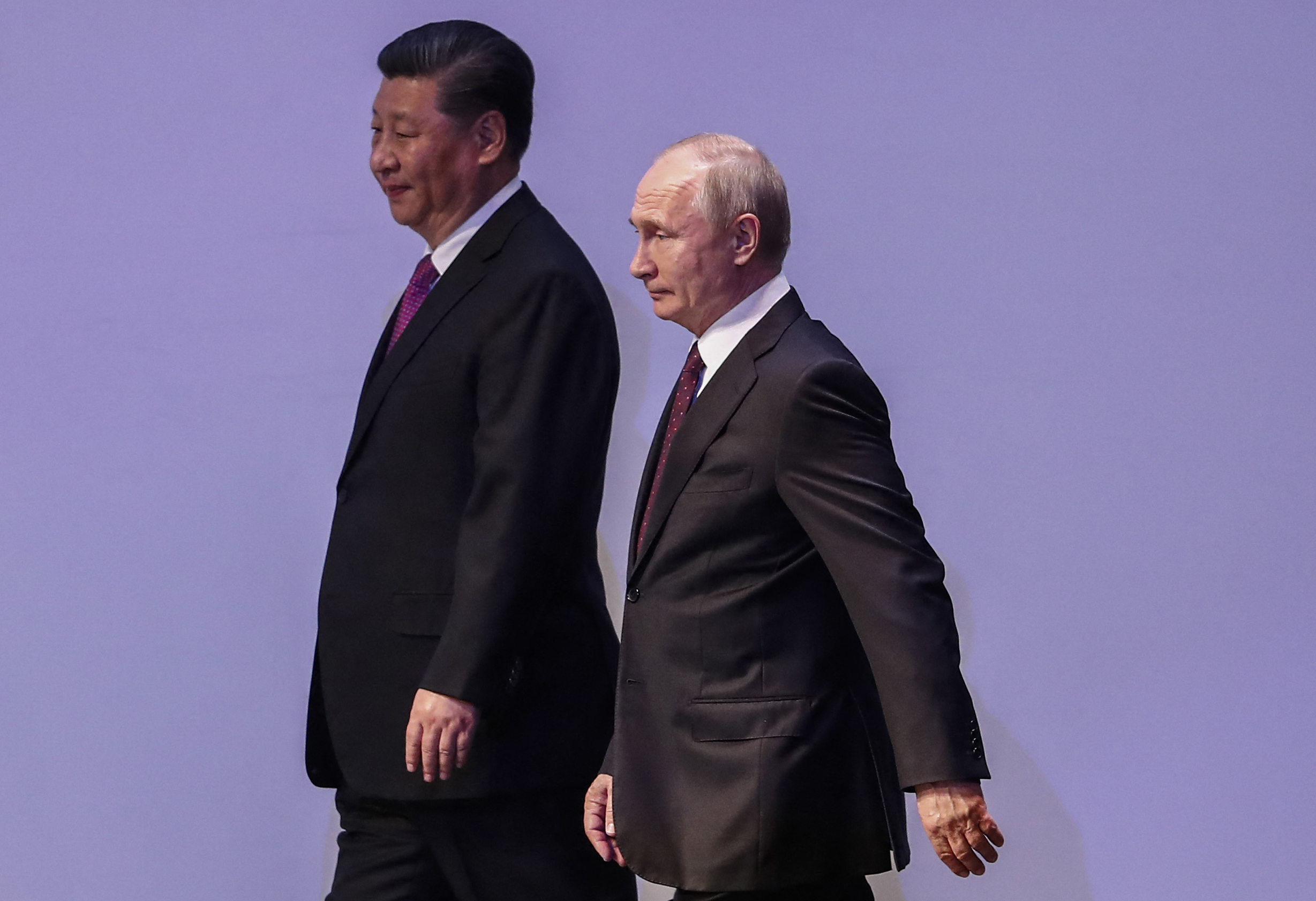 Russian President Vladimir Putin and his Chinese counterpart Xi Jinping attend a gala evening dedicated to the 70th anniversary of the establishment of diplomatic relations between Russia and China in Moscow on 5 June, 2019 (AFP)