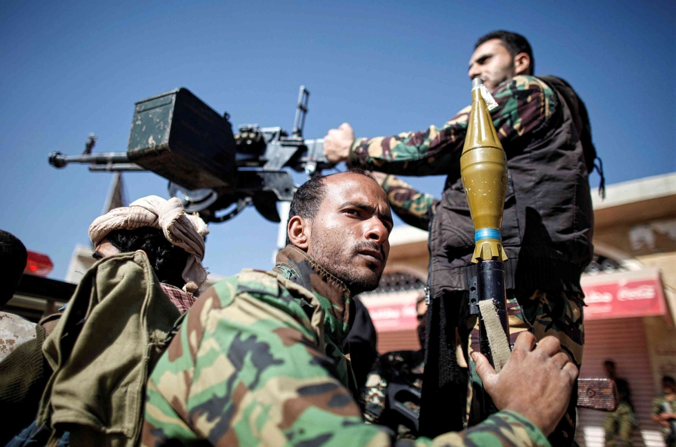 Photo: Newly recruited resistance fighters in Sanaa ride on the back of a truck during a farewell ceremony as they head to the battlefront to fight against government forces in January 2017 (Reuters)