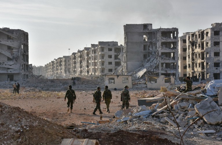 Photo: A member of the Syrian pro-government forces stands amid heavily damaged buildings in Aleppo's 1070 district on 8 November 2016, after troops seized it from rebel fighters (AFP)