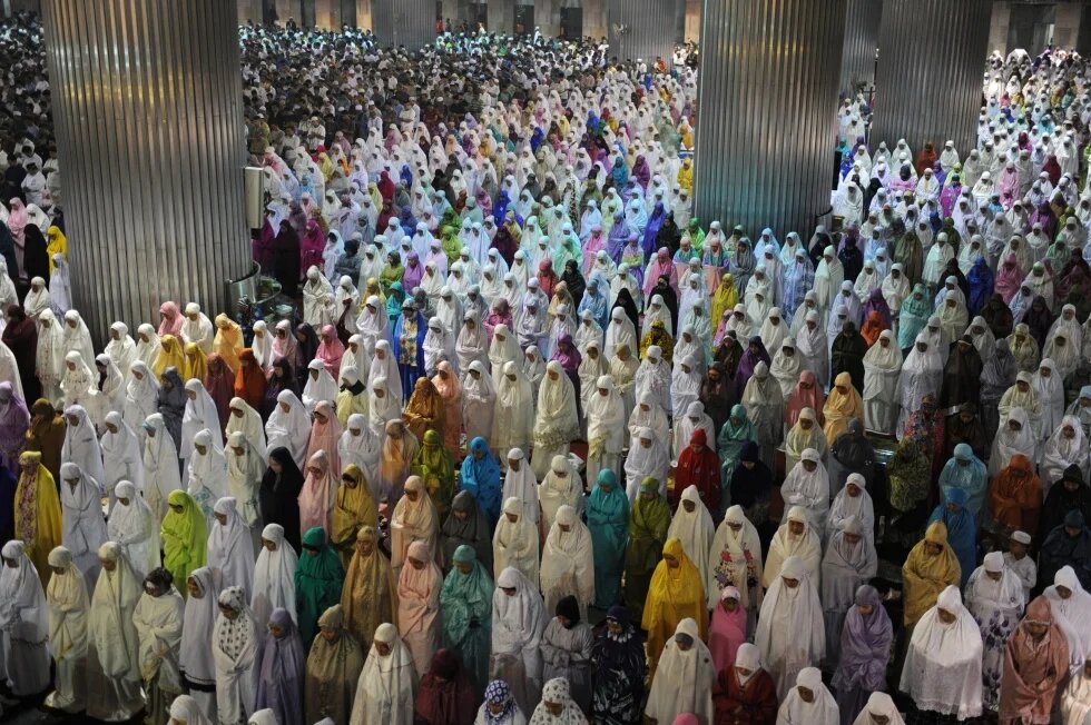 Photo: Indonesian Muslims perform the "tarawih" prayer as the world's most populous Muslim-majority country prepares to celebrate Ramadan the month at Istiqlal mosque in Jakarta on 28 June (AFP)