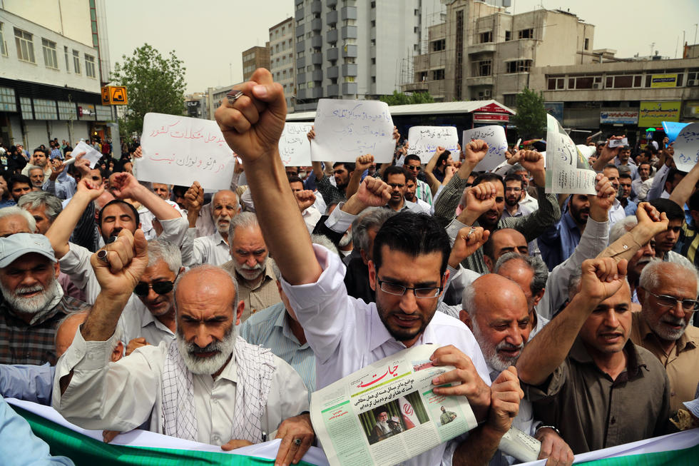 Photo: Iranians chant slogans during a demonstration in Tehran on May 29, 2015, following weekly Friday prayer ceremony to call on the Iranian government to reject the nuclear agreement with world powers. AFP (AFP)