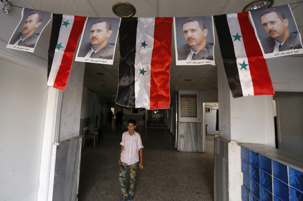 Photo: A Syrian boy walks under portraits of Syrian President Bashar al-Assad adorning a hospital in the eastern city of Deir Ezzor on 20 September 2017 as Syrian government forces continue to press forward with Russian air cover in the offensive against Islamic State group jihadists across the province. (AFP)