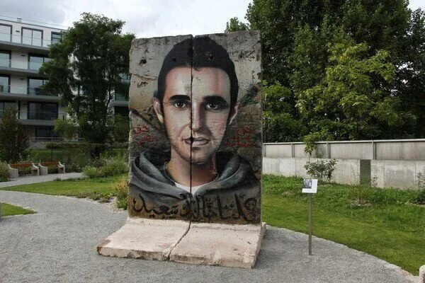 Photo: An image of Khaled Said painted on a fragment of the Berlin Wall by Andreas von Chrzanowski (Twitter / @wustelbalad)