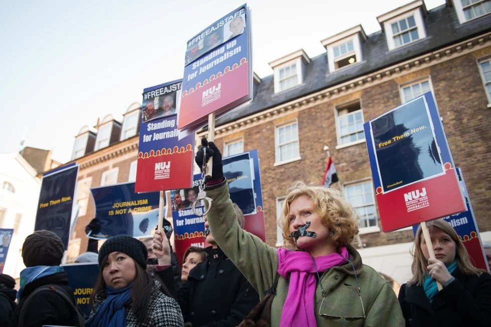 “It’s pretty terrifying for all of us who are correspondents, who covered Egypt and who have covered the Middle East, because we look at the Al-Jazeera three and we think that could have been any of us,” Lindsey Hilsum, Channel 4 News’s International Editor, told me at a protest outside the Egyptian Embassy in London on 29 December, the coldest day of the year.