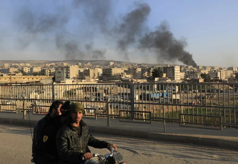 Photo: A picture taken in the northern town of Afrin on 2 February 2018 shows smoke from burning tyres, used to block the visibility of planes (AFP)