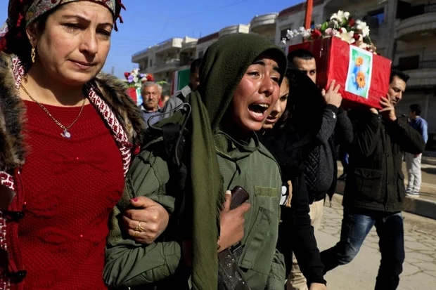 Syrian Kurds mourn during a funeral in the town of Afrin for civilians and YPG fighters killed in battles with the Turkish army (AFP)
