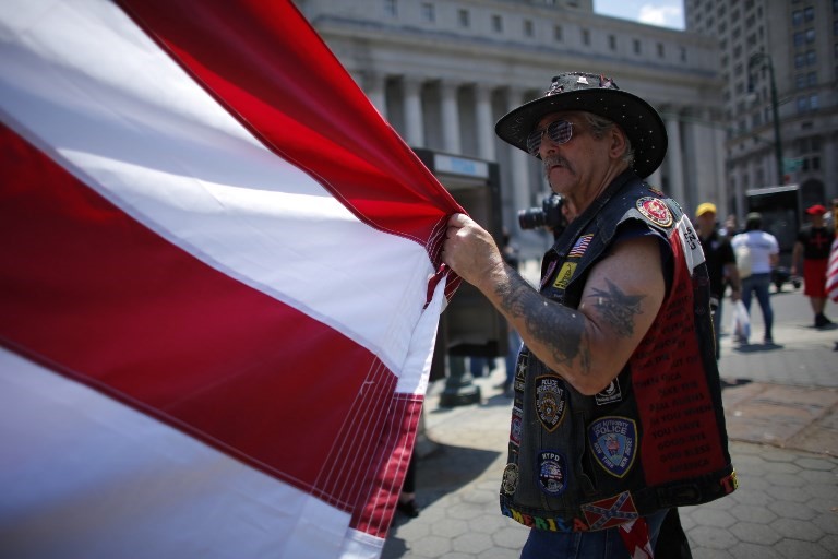 Photo: A Trump supporter holds a US national flags during a rally organised on 10 June, 2017 (AFP)