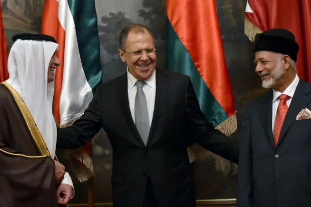 Saudi Arabia's Foreign Minister Adel al-Jubeir, Russian Foreign Minister Sergei Lavrov and Oman's Foreign Minister Yusuf bin Alawi during a meeting in Moscow in May 2016 (AFP)