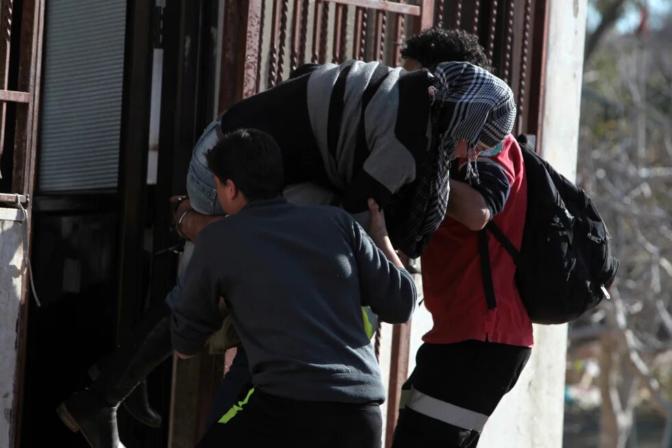 Photo: Palestinian activist Manal Tamimi (top) is carried by friends into a house after she was shot in the leg with rubber bullets by Israeli border guards in the West Bank village of Nabi Saleh during a protest against the expansion of Jewish settlements in Palestinian land on 27 December, 2013 (AFP).