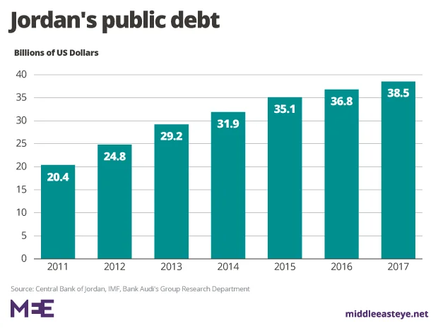 Secondly, in 2017, the foreign grants that Jordan previously received decreased by 15 percent. This explains an important aspect of the current economic crisis, and the reason why the government was forced to raise the prices of many goods and the income tax, triggering massive protests.