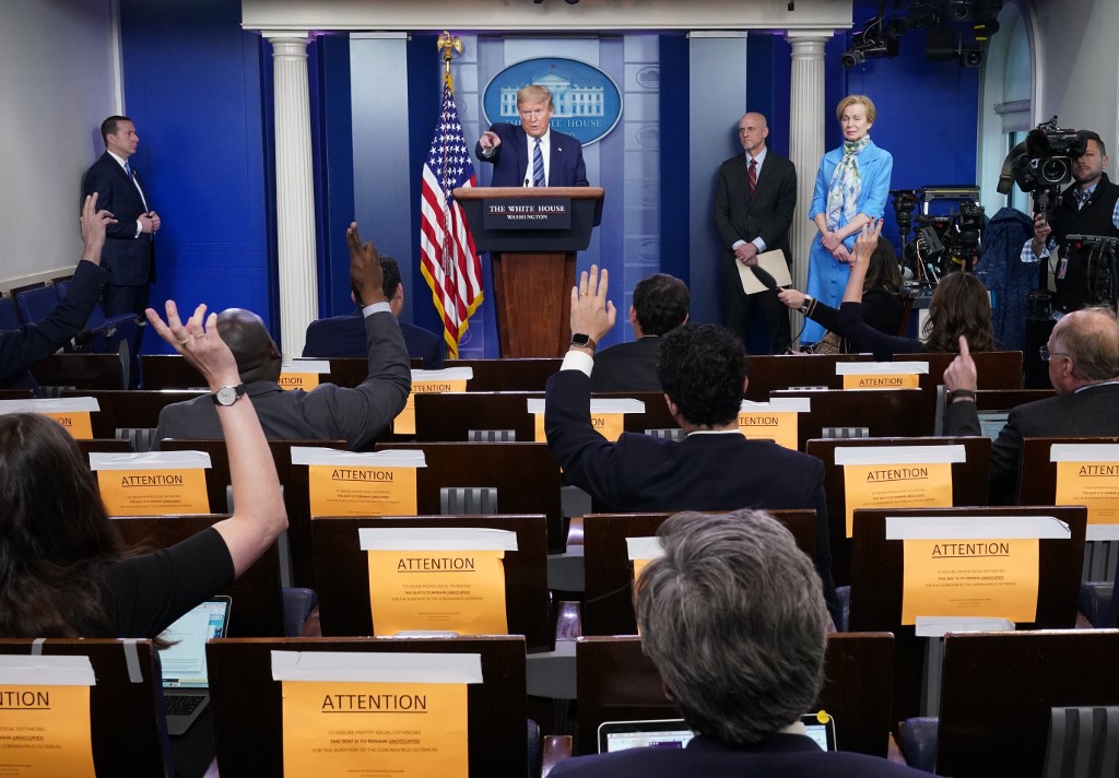 US President Donald Trump answers questions from the media during the daily briefing on coronavirus in Washington on 21 April (AFP)