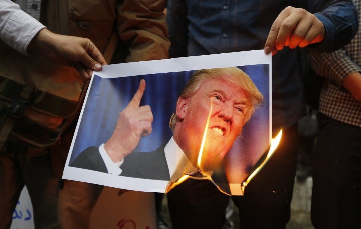 Photo: Iranians burn an image of US President Donald Trump during an anti-US demonstration outside the former US embassy headquarters in the capital Tehran on 9 May (AFP)