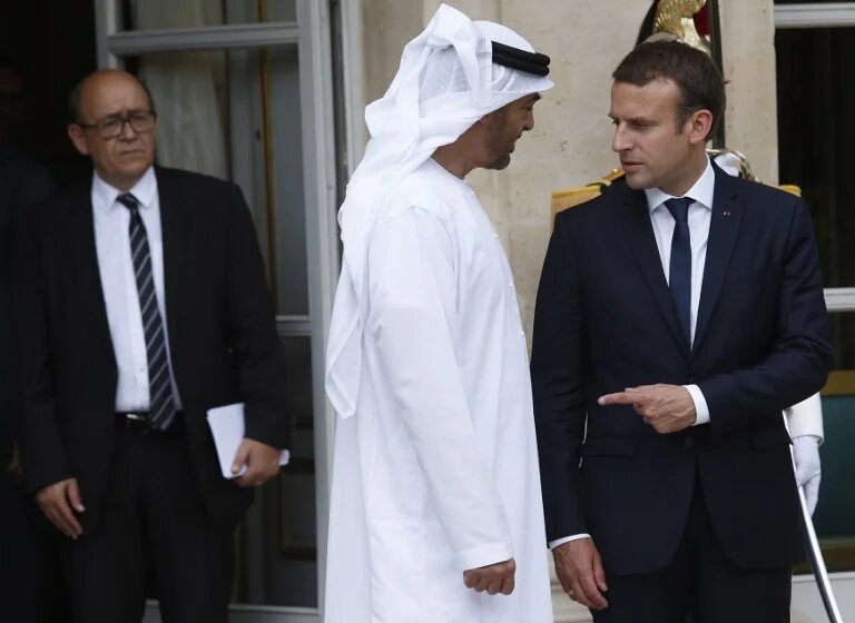 Photo: French president Emmanuel Macron and the Abu Dhabi Crown Prince Mohammed bin Zayed at the Élysée Palace, 21 June 2017 (AFP).