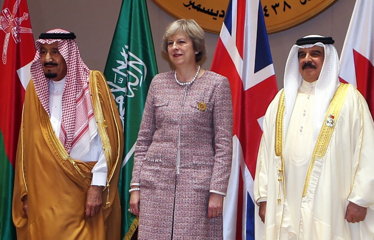 Photo: Saudi King Salman, UK Prime Minister Theresa May and King of Bahrain Hamad bin Issa al-Khalifa in Manama, Bahrain, December 2016 (AFP)