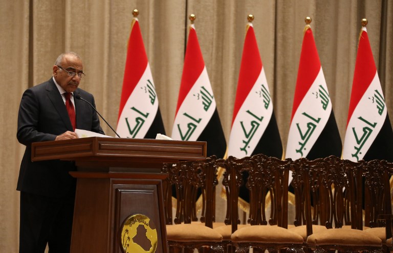 Photo: Adel Abdul Mahdi, the new prime minister, addresses the Iraqi parliament on 24 October 2018 in Baghdad (AFP)