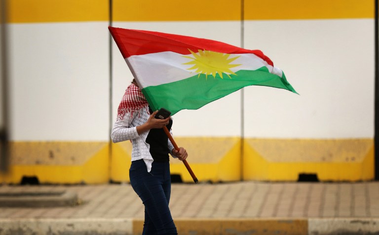 Photo: An Iraqi Kurd marches with a Kurdish flag during a protest in Erbil on 30 October 2017 (AFP)