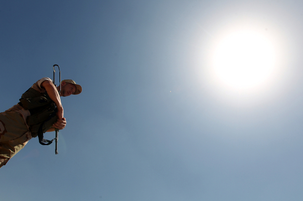 Photo : un combattant peshmerga kurde irakien prend position sur la ligne de front à Bashiqa, une ville situé à 13 kilomètres au nord-est de Mossoul, le 12 août 2014 (AFP).