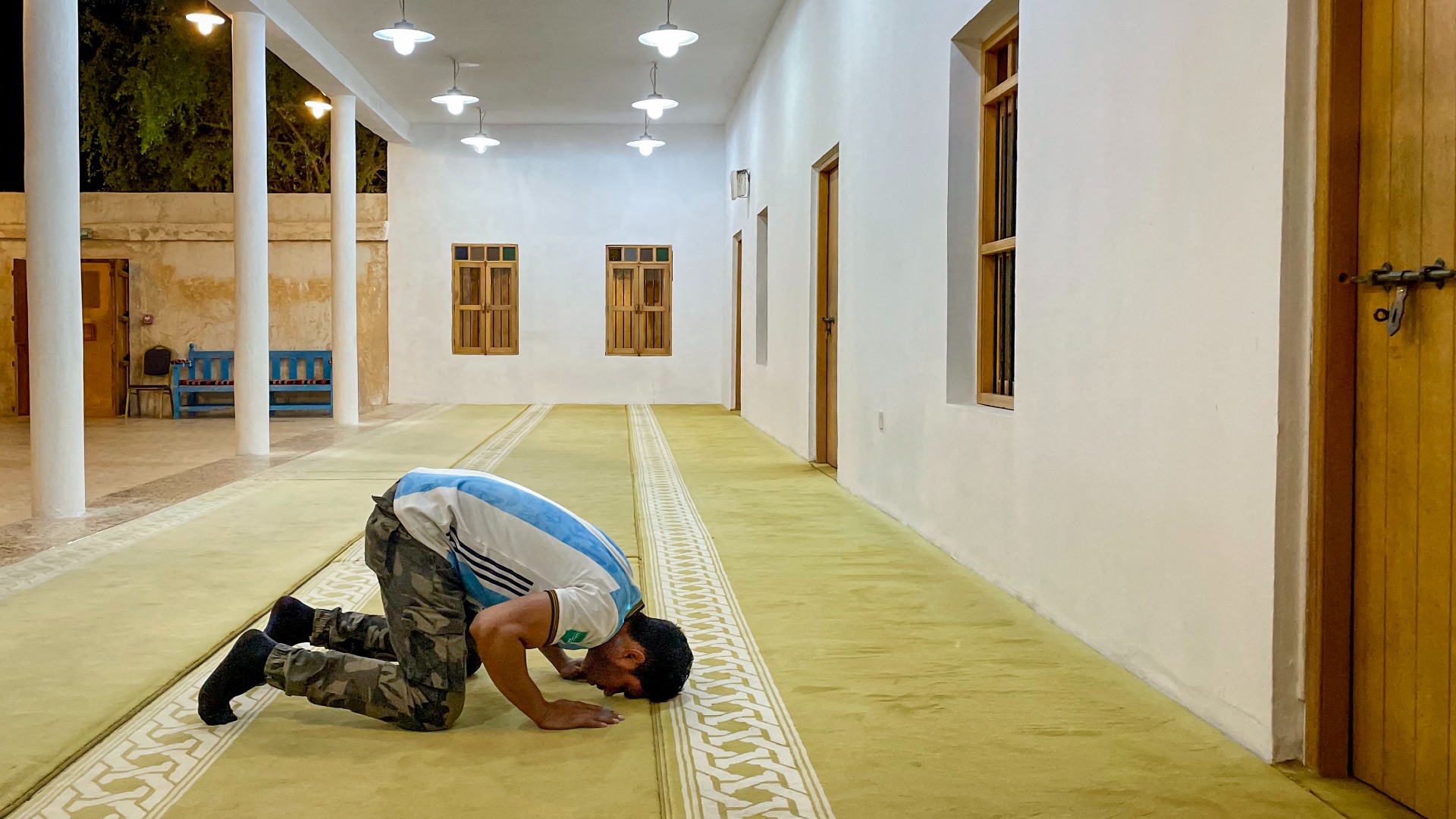 At the fan village he is staying at in the district of Mesaimeer, southwest of Doha,Wihaib attends the mosque daily, praying alongside football fans from Saudi Arabia, Morocco and beyond.
