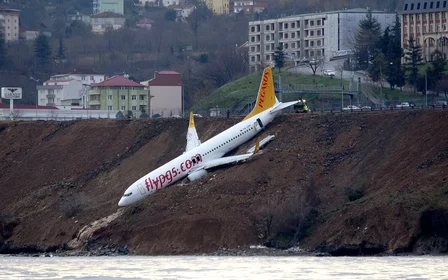 Turkish passenger plane skids off runway onto seaside cliff