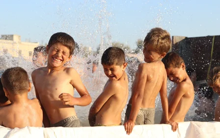 In pictures: Escape vehicle becomes a makeshift swimming pool for Idlib’s displaced