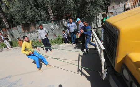 Pulling trucks with his teeth, the skinny superman of Gaza