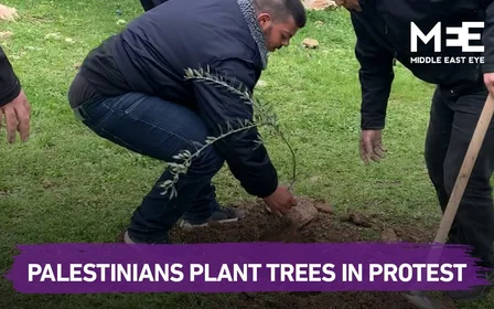 Palestinians plant olive trees in protest over Israeli settlement projects