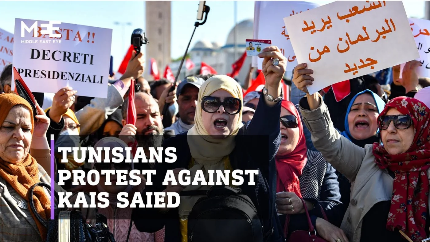 Thousands of people rallied in Tunis against the president's power grab, near Tunisia’s suspended parliament.