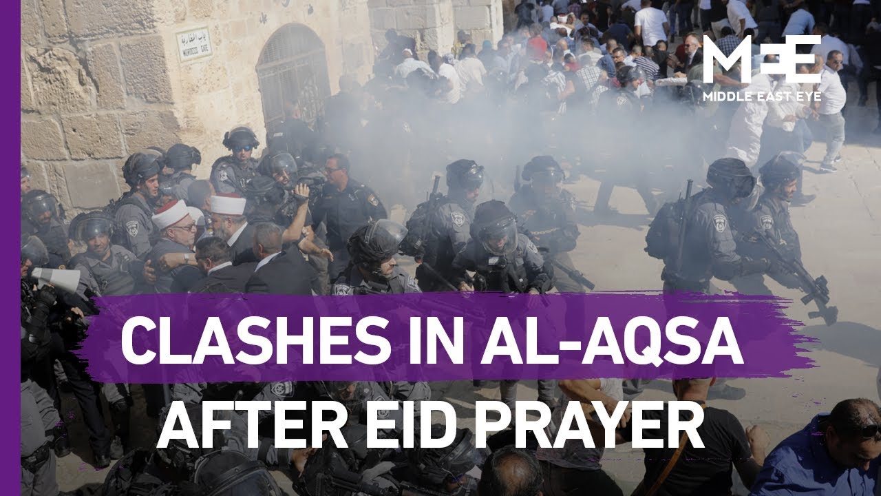 Clashes erupted between Palestinian worshippers and Israeli police in the Al-Aqsa compound after Eid al-Adha prayers, resulting in the 61 injuries