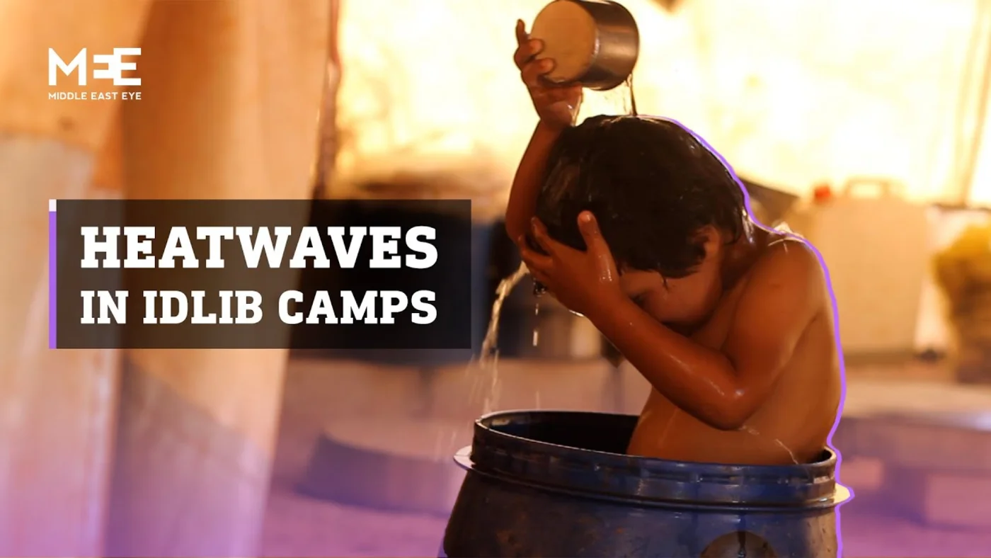 With little resources available in makeshift camps in Idlib, displaced Syrians are forced to use primitive means to keep themselves and their children cool as temperatures rise in the region