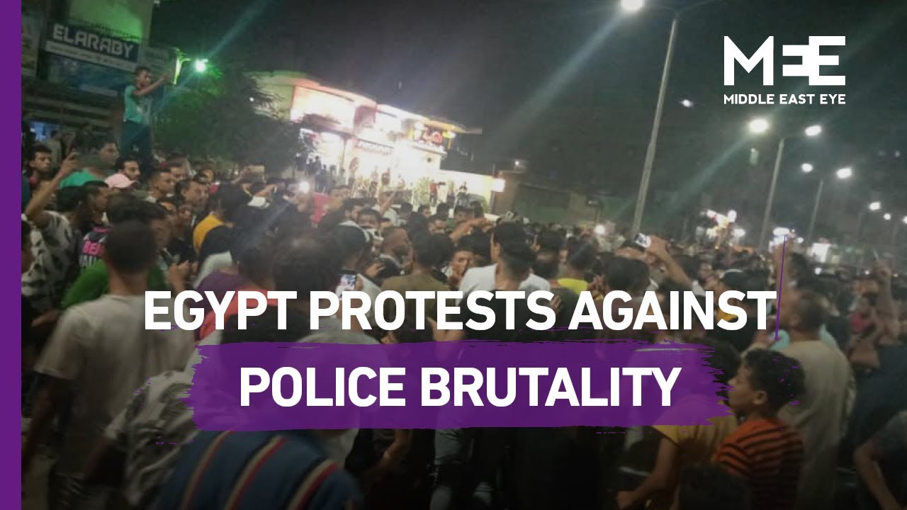 Egyptians protest after a young man is killed in police custody in Al-Munib, Cairo