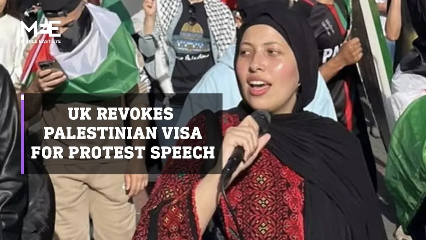 Student visa of Dana Abuqamar, a Palestinian law student and leader of the Friends of Palestine Society at the University of Manchester, was revoked after she made a speech at a university demonstration
