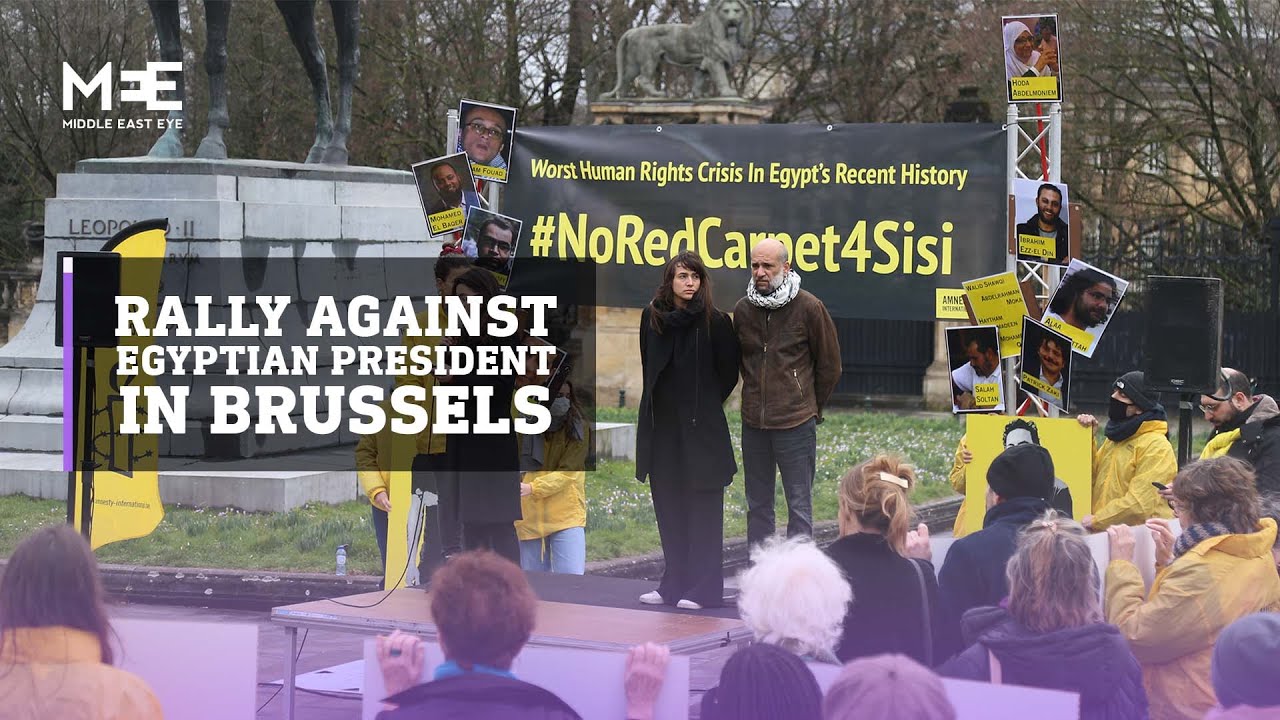 Human rights advocates rallied in Brussels on Wednesday against Egyptian President Abdel Fattah el-Sisi, who arrived in the Belgian capital for a summit between the European Union and the African Union.