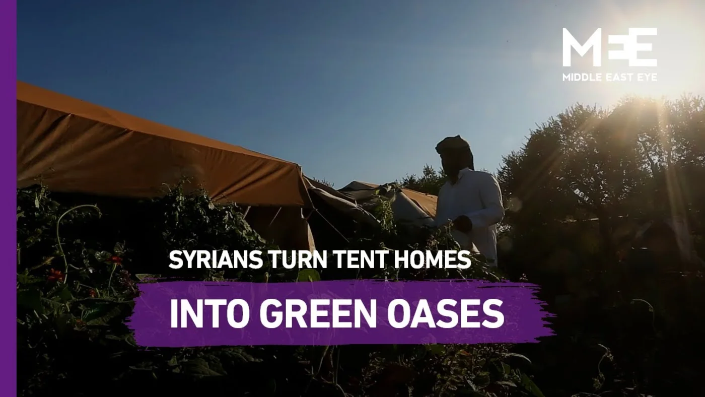 Despite their difficult living conditions, a group of internally displaced Syrians have grown extensive gardens of greenery and flowers around their homes, turning them into green oases.