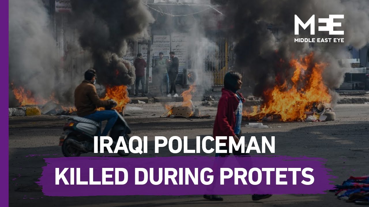 A policeman was killed Sunday in Iraq, as security forces tried to disperse a third consecutive day of protests in the city of Nasiriyah, according to medics. Witnesses said security forces opened fire on demonstrators from the city's Haboubi Square, after a third consecutive day of protests.