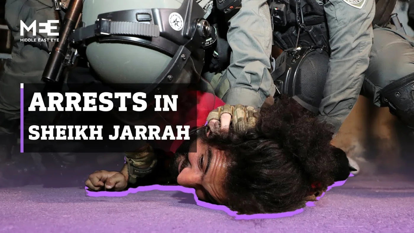An Israeli police officer was seen kneeling on a Palestinian man's neck during the arrest of three Palestinians following a protest in the Sheikh Jarrah neighbourhood in East Jerusalem.
