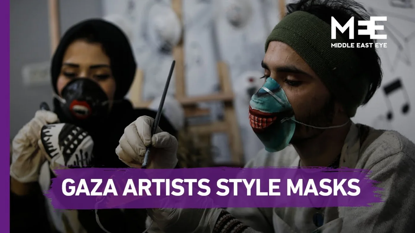 Palestinian artists in Gaza paint on masks to raise awareness about coronavirus
