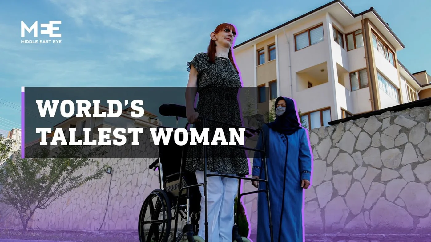 The Turkish woman stands at two meters 15 centimetres tall and was diagnosed with a rare genetic disease that causes rapid growth.