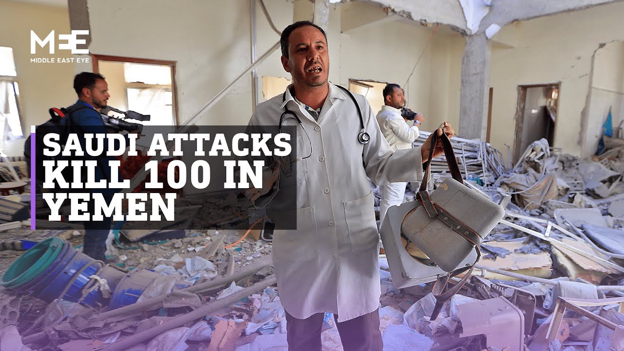 At least 100 people have died in Yemen, including three children, following a day of intense air strikes on rebel Houthi-held areas by the Saudi-led coalition.